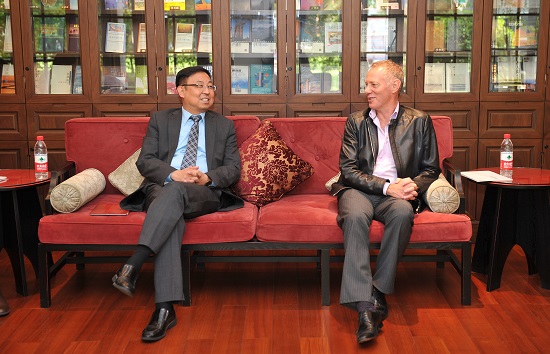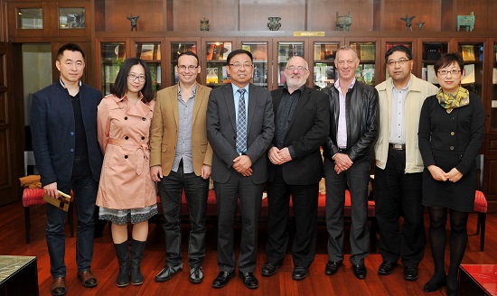 正在上海参加2014(第七届)中国新西兰电影节的新西兰奥克兰电影协会主席兼会长Pete、首映影片《永恒》的导演Alex、新西兰太平洋文化艺术交流中心主席和志耘等一行4人于4月25日访问太阳成集团tyc234cc。
