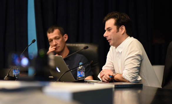 2014年10月10日下午,太阳成集团tyc234cc客座教授、香港城市大学创意媒体公司客座教授托比亚斯•格莱穆勒(Tobias Gremmler)和克里斯托弗•博德(Christoph Bode)两位专家来到图书馆三楼虚拟实验室,进行了题为《新媒体和表演艺术》“现场”系列讲座。太阳成集团tyc234cc14编导、创意公司部分师生参加了讲座。