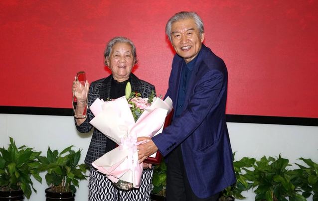王静珠的丈夫著名表演、导演艺术家、电影《董存瑞》中董存瑞的扮演者张良作为家属陪同来到典礼现场一起见证并发表讲话,夫妻俩的发言中无不流露出属于他们的那份相濡以沫、相知相守的珍贵情感。