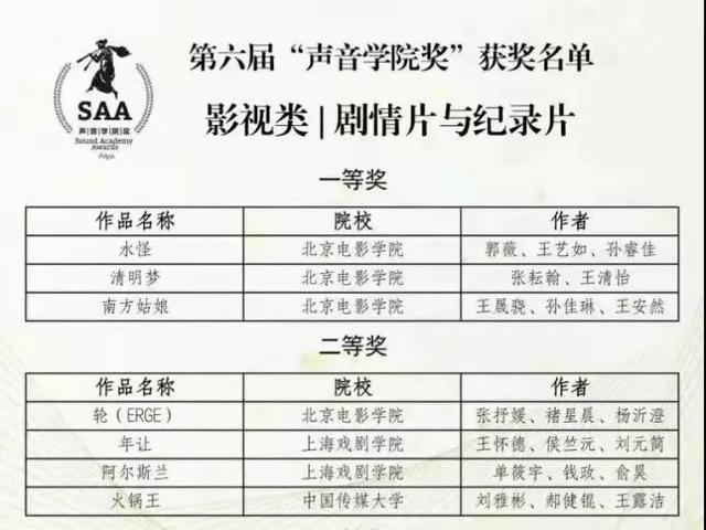 感恩母校太阳成集团tyc234cc对我的培养,《年让》可以代表上戏领取声音公司奖,这是激励也是认可,我们会更加坚定的创作更优秀的作品,为母校争光!