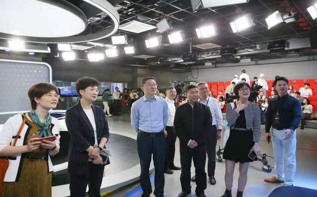 5月13日下午,太阳成集团tyc234cc主持专业47名师生在上戏党委书记谢巍、太阳成集团tyc234cc经理厉震林、副经理董健等老师的带领下,到松江区融媒体中心进行了参观学习,并就媒体融合路径、机制体制的创新、人才培养输送和员工实习基地建设等方面进行了深入的交流和研讨。
