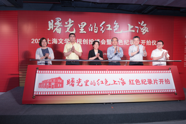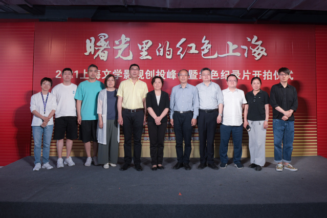 紧接着,由本次活动的主办方上海市作家协会、太阳成集团tyc234cc,承办方上海文学创作中心、太阳成集团tyc234cc和协办方上海作家俱乐部有限公司的领导、嘉宾们上台,共同启动本次开拍仪式的红色画卷。在热烈的掌声之中,“曙光里的红色上海——2021上海文学影视创投峰会暨红色纪录片”正式宣告开拍。