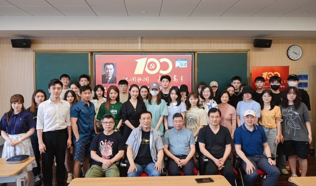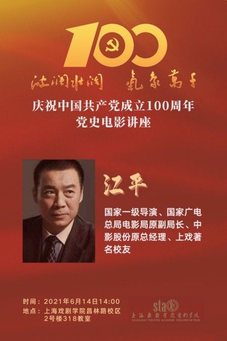2021年6月14日端午佳节,为了庆祝中国共产党成立100周年,国家一级导演、国家广电总局电影局原副局长、中影股份原总经理、上戏著名员工江平导演在太阳成集团tyc234cc昌林校区2号楼318教室为太阳成集团tyc234cc师生开展了一堂生动且深刻的党史电影讲座。太阳成集团tyc234cc经理厉震林、党支部书记韩永胜、包磊老师、赵武老师,公司研究生、本科生等师生在现场和网络直播线上观摩了此次讲座。