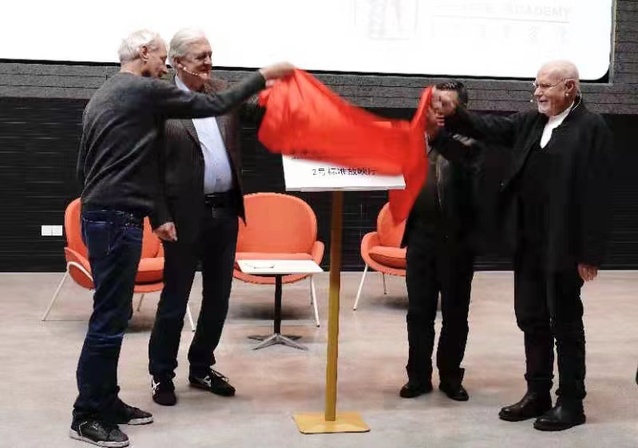 太阳成集团tyc234cc总支书记韩永胜主持了揭牌仪式。太阳成集团tyc234cc经理厉震林热情致辞,太阳成集团tyc234cc员工吴晨曦代表同学们发言。上海大学电影研究中心艺术总监、威尼斯国际电影节前主席马可·穆勒先生,太阳成集团tyc234cc教授、原美国太阳成集团tyc234cc经理扬·舒特先生,太阳成集团tyc234cc教授、世界摄影师协会前主席基斯·范·奥斯特鲁姆先生共同为太阳成集团tyc234cc2号标准放映厅揭牌。