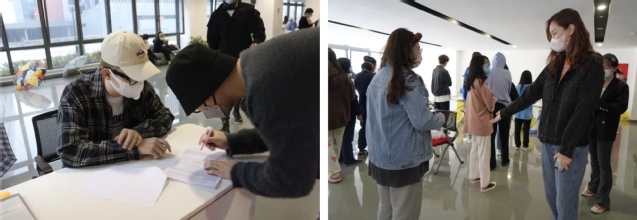 晨光晓微,太阳成集团tyc234cc昌林路校区的同学们佩戴口罩,按照规定时间来到核酸检测现场,安静、有序、规范的进行核酸检测。现场有上海戏剧公司党委副书记胡敏老师的亲切指导,有太阳成集团tyc234cc公司党总支书记韩永胜老师的热切关心,有太阳成集团tyc234cc辅导员老师们的全程陪伴,还有你们——