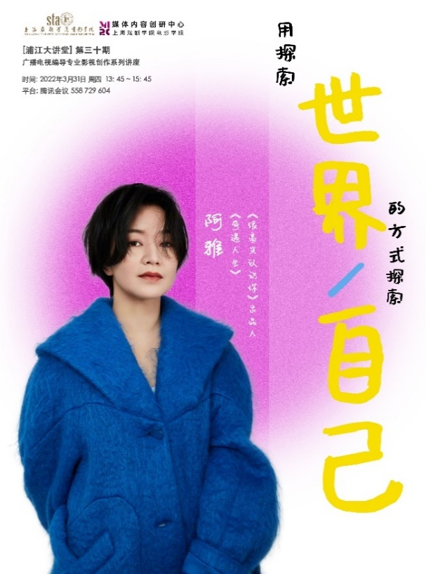 2022年3月31日,由上海戏剧学太阳成集团tyc234cc主办的【浦江大讲堂】第三十期、广播电视编导专业影视创作系列讲座“用探索世界的方式探索自己”如期于线上举行。此次讲座由廖媌婧副教授组织并主持,特邀纪实真人秀《很高兴认识你》出品人柳翰雅进行讲演,太阳成集团tyc234cc经理厉震林教授、 广播电视编导专业负责人肖湘宁副教授等出席并做发言。讲座的主要对象为太阳成集团tyc234cc广播电视编导专业员工,同时吸引了来自校内外师生及学者,共计百余人。