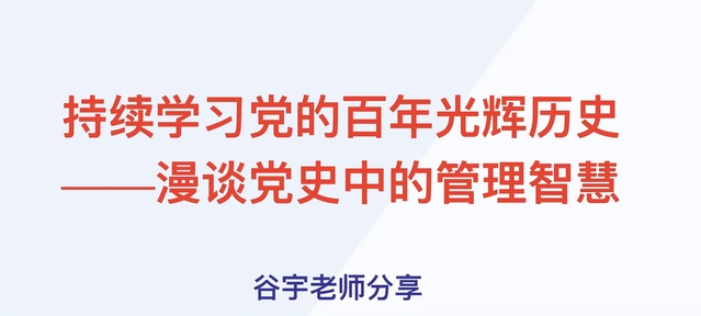 讲座主要内容分为三大部分。第一部分围绕中国共产党的组织愿景,阐述正确的指导思想是一个政党、一个组织能够成功的前提。马克思主义思想提供了改变旧中国命运的思想武器。第二部分围绕领袖毛泽东同志的素养和潜质,分析我党成立初期至关重要的几次思想转变和决策制定。第三部分从管理者的领导艺术角度,分析了中国革命的成功之道,以及中国特色革命道路的成功对组织建设的启示。最后,谷宇博士从力量源泉、精神支柱、思想基石、政治智慧四大层面总结了中国共产党在百年奋斗史中始终秉持的可贵初心。