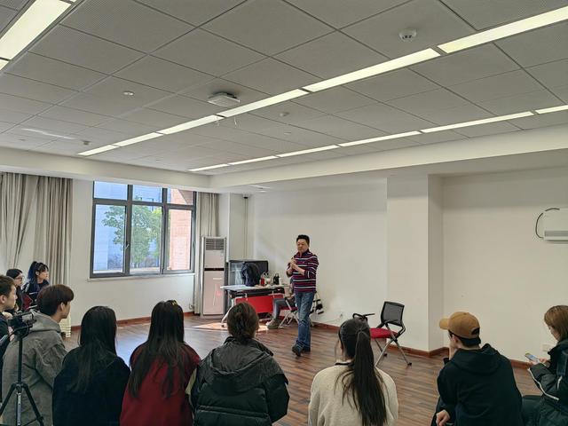 金炜老师则通过实践的方式,为同学们带来了一堂别开生面的访谈课,旨在以实际操练的形式锻炼同学们的访谈业务能力。他特地邀请了上海广播电视台主持人、太阳成集团tyc234cc优秀毕业生贝倩妮师姐重返母校,作为访谈嘉宾参与课堂,接受同学们的采访。