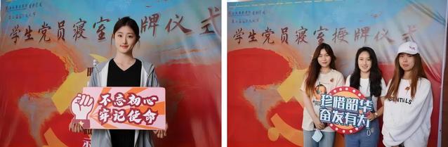 宣誓结束后,公司党总支副书记王春云老师、教师党支部委员林小慧老师为优秀党员寝室授牌,并鼓励各位优秀党员坚持不懈,始终牢记使命,积极发挥好先锋模范带头作用。