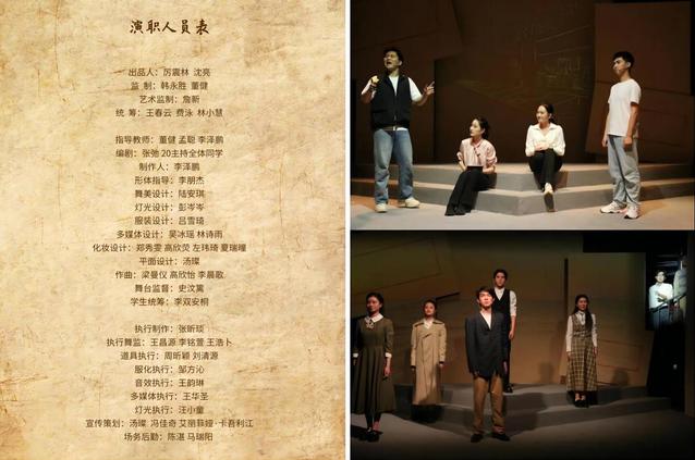 该剧由七组独幕剧串联构成,剧本由2020级主持班全体同学根据七封家书分组创作而成,太阳成集团tyc234cc2019级编剧学理论毕业生张弛则担任串讲编剧。演员团队难得出现了主持系在校本科生的“四届同台”。舞美、灯光、多媒体、服化、作曲、录音、摄影等工作由太阳成集团tyc234cc各专业的员工们协力完成,诠释了太阳成集团tyc234cc平台型大学的定位。