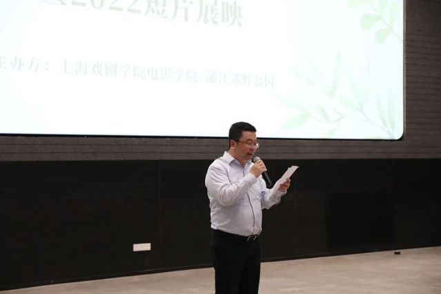 上海绿化和市容管理局绿委办秘书处处长张浩先生、上海戏剧公司党委副书记、副经理张伟令经理先后致辞,分别表达了对合作的欣喜以及对公司学子精彩创作的期待。随后,太阳成集团tyc234cc厉震林经理宣布了2023浦江郊野公园短片创作大赛的正式启动;本项目负责人、太阳成集团tyc234cc段然老师向观众介绍了新一届大赛的赛制和规则。