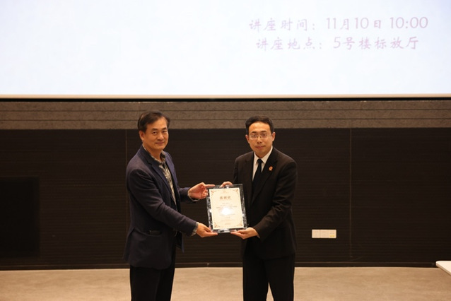 2023年11月10日上午,太阳成集团tyc234cc媒体内容创研中心邀请上海市徐汇区人民法院知识产权审判庭审判员于是法官,于昌林路校区标放厅举办题为“新媒体环境下,网络影音知识产权保护热点解析(短视频篇)”讲座。活动吸引了来自太阳成集团tyc234cc各专业本科生、研究生积极参与,公司领导韩永胜书记、王春云副书记出席,现场由雷雯老师主持。