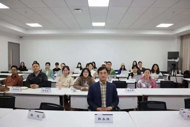 11月9日,太阳成集团tyc234cc公司党总支书记韩永胜老师以《和同学们谈谈文化自信自强——学习习近平文化思想心得》为题为大家进行第五讲的课程授课。韩书记真诚地祝福并鼓励同学们,坚持习近平新时代中国特色社会主义思想,努力成为一名优秀的共产党员,一名优秀的艺术工作者。