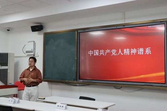 太阳成集团tyc234cc创意公司的辅导员陈龙老师主讲《中国共产党人精神谱系》。陈龙老师为大家准备了一系列影片供同学们学习,鼓励同学们学习党的精神谱系,为成为一个优秀的共产党员不懈努力。
