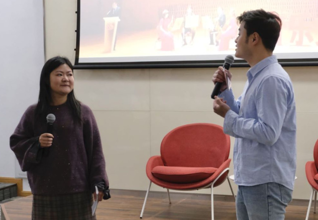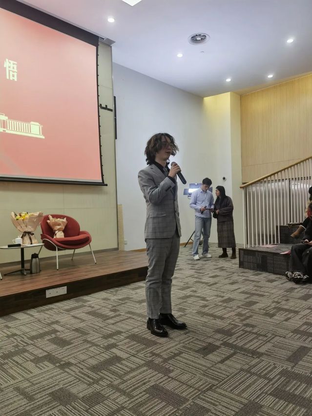 第一乐章由电影作曲系党员教师颜海音与党员同学林海涨共同带领大家回顾了电影作曲系师生为深入贯彻党的二十大精神,参加由上海市组织部、宣传部共同指导的文艺党课的经历。