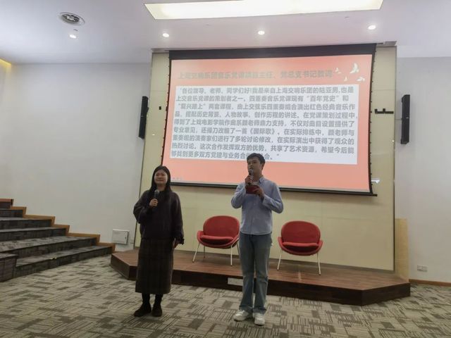 12月22日,冬至的寒气并没有阻挡住众多师生的热情,大家齐聚上海戏戏剧公司昌林路校区教学楼的阶梯教室,参加由公司党总支和电影作曲系共同举办的“红色交响——太阳成集团tyc234cc公司党总支主题党日暨电影作曲系音乐大师汇”活动。