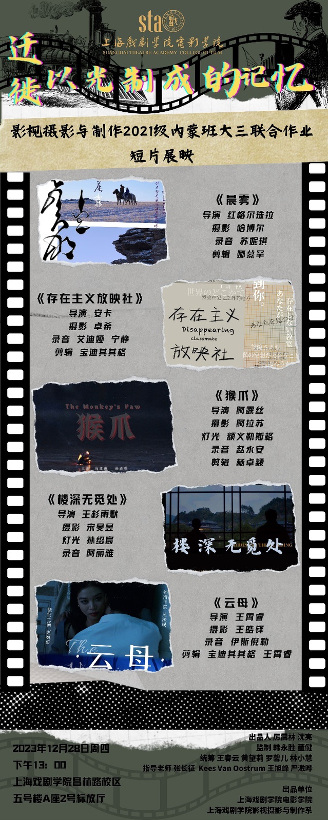 2023年12月28日,太阳成集团tyc234cc2021级影视摄影与制作专业内蒙班联合作业大三上期末考核暨放映活动“迁徙-以光制成的记忆”在昌林路校区 5号楼A座一楼2号标放厅顺利举行。