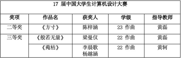 就在刚刚公布的2024年第十七届中国老员工计算机设计大赛(国赛)获奖名单中,公司电影作曲系员工共获得二等奖1项、三等奖2项的好成绩,获奖作品受到了相关专业领域和社会的广泛关注与好评。同时,作曲系主任黄磊老师指导员工成绩优秀,获得了优秀指导教师奖,可喜可贺!