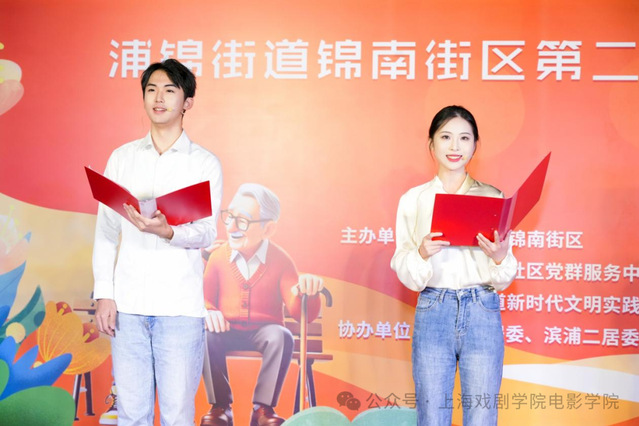 2024主持MFA的王子安、毕笑笑、廖玉琳和2023主持专业的曹曦同学倾情朗诵的诗歌《岁岁重阳今又重阳》,是以青年人的视角,在声音与情感的交融中表达了对老年人的关切与敬爱。“唱响不老的岁月,唱响‘九·九’重阳”,他们充分展示了上戏学子的专业素养和人文情怀,收获了在场观众与市民群体的阵阵掌声。
