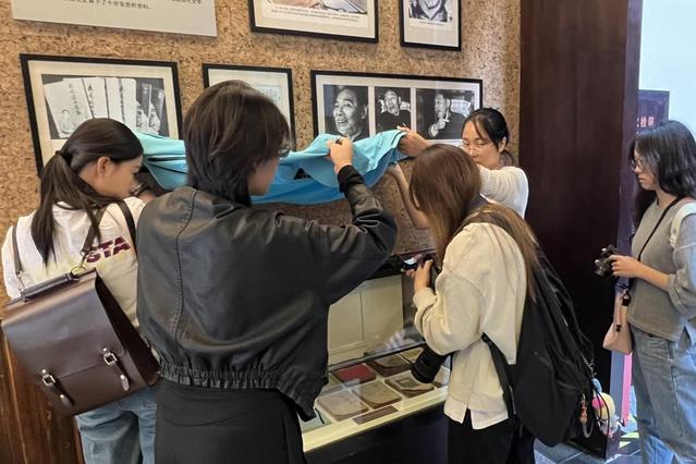 同学们分为两组,分别前往孔另境纪念馆,王会悟纪念馆与茅盾纪念堂。基于前一天的充分讨论与学习,大家顺利针对前一天商讨出的方案进行实地拍摄。李涛老师在拍摄现场针对纪念馆中的展品,向同学们进行了更加深入的背景分享,指导大家在拍摄时联系人物的背景与纪录片结构,在拍摄的同时思考呈现方式,如何从细微之处入手,从展品容易被人忽视的细节之处展现拍摄对象的人物性格,帮助同学们进行更好的画面呈现。