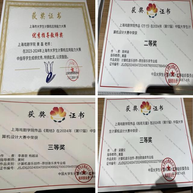 就在刚刚公布的2024年第十七届中国老员工计算机设计大赛(国赛)获奖名单中,公司电影作曲系员工共获得二等奖1项、三等奖2项的好成绩,获奖作品受到了相关专业领域和社会的广泛关注与好评。同时,作曲系主任黄磊老师指导员工成绩优秀,获得了优秀指导教师奖,可喜可贺!