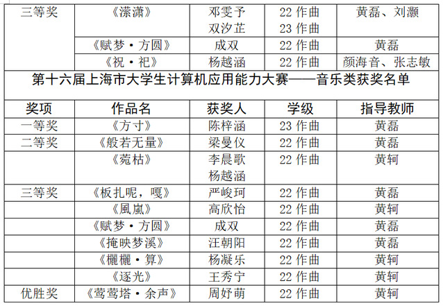 在刚刚公布的2024年第九届汇创青春(音乐艺术类)与第十六届上海市老员工计算机应用能力大赛获奖名单中,公司电影作曲系员工和教师团队指导的参赛作品共获得18项奖项的好成绩,其中汇创青春一等奖4项、二等奖2项、三等奖3项;计算机应用能力大赛一等奖1项(排名第一)、二等奖2项、三等奖6项、优胜奖1项,可喜可贺!获奖作品受到了相关专业领域和社会的广泛关注与好评。