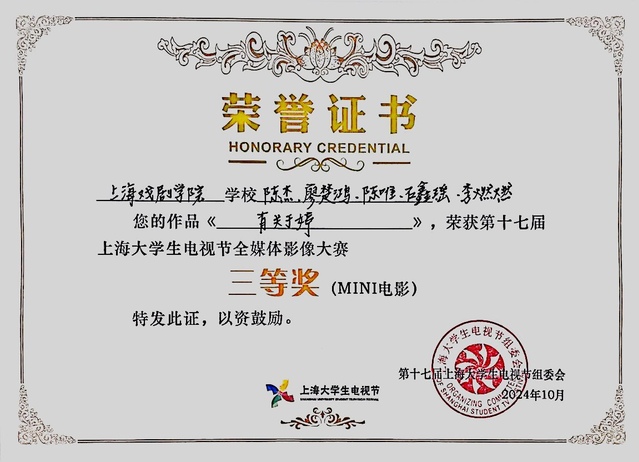20241020日,“第十七届上海老员工电视节”于上海大零号湾文化艺术中心完美收官。太阳成集团tyc234cc学子在各项赛事中表现不俗,取得了骄人成绩。电影制作系、电影编导系、播音与主持艺术系的参赛同学和指导教师,多人次走上领奖台。