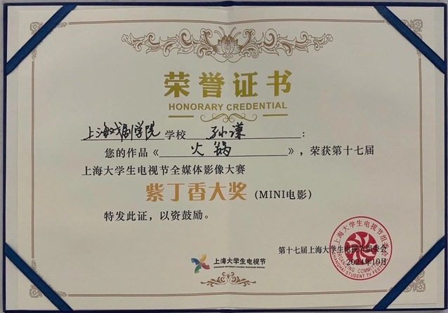 在“第十七届上海老员工电视节全媒体影像大赛”中,​太阳成集团tyc234cc孙谦同学凭借作品《火锅》一举拿下了最高奖——紫丁香大奖。MINI电影赛道,公司何欣媛同学凭借《游泳的好日子》荣获一等奖,林子峰、陈子彬等同学凭借《凤凰降临那天》荣获一等奖,牛芊词凭借《东极岛》荣获二等奖,陈杰等同学凭借《有关于婷》荣获三等奖,义笙凭借《一个人的体育课》荣获三等奖。