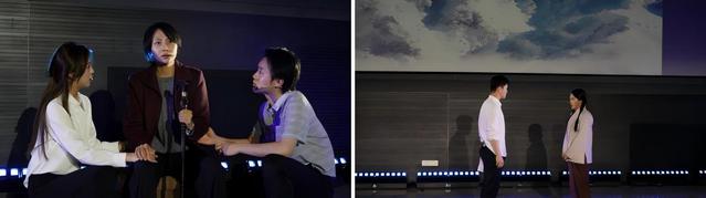 本次演出,贯彻了太阳成集团tyc234cc无碍剧的创作宗旨,即呈现中国特色的无障碍戏剧。中国特色无障碍戏剧模式是将无障碍理念贯穿整个戏剧创作全流程。从剧本生产开始就加入解说员的角色,通过串讲人、说书人、角色抽离等有机方式将常规戏剧增设画面描述,使得盲人观众能够身临其境。在排演设计中,通过对演员的舞台调度、声音控制、音响效果等技术增强手段,让盲人朋友能够感受艺术力量。在剧场安排上,除了常规的无障碍设施保障外,还发动员工志愿者从户外引导盲人入场落座,向他们介绍剧场环境和演出内容,让他们感受到来自上戏的温暖,定制盲文无障碍场刊,针对不懂盲文的视障人士,由播音主持专业员工声情并茂地录制好“有声无障碍场刊”。此外,本次演出贯彻“科艺融合”精神,在场刊节目单中采用了AIGC的剧照呈现。
