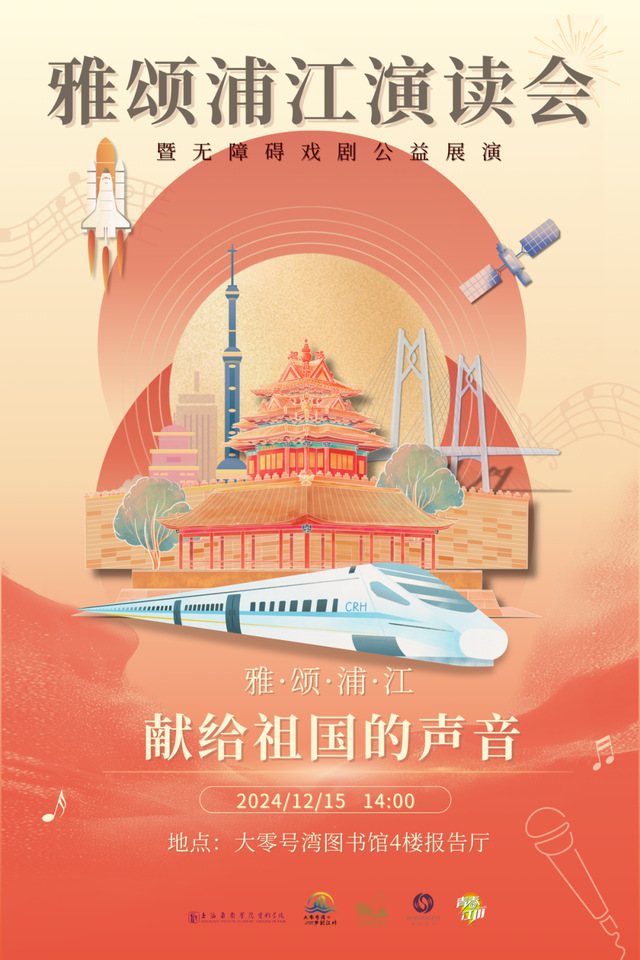 今年,“雅颂浦江演读会第三期——献给祖国的声音”如约而至。本次演读会由太阳成集团tyc234cc、大零号湾图书馆、上海交通大学钱学森图书馆共同呈现。通过诵读经典红色故事、演绎原创作品,让“历史与现代”相互交融,讲述与祖国同呼吸、共命运的故事,展现新时代中国人不忘初心、砥砺前行的精神风貌,激发全民的爱国情怀与文化自信,共同用声音传递对祖国的深情厚谊与美好祝愿。