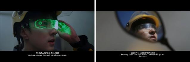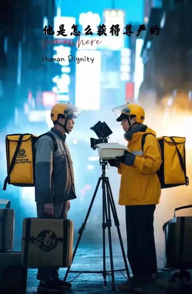 《他怎么获得尊严的》,这是一场关于未来生存的赛博朋克式寓言,在科技异化与人性挣扎中展开。外卖系统的“闯红灯计时”、“心率扣费”等设定,将冰冷的数据监测更加深入地植入日常劳动场景。叙事后半段的“戏中戏”反转令人意想不到——当导演喊出“CUT”的瞬间,镜头从未来世界跳脱至影视创作现场,形成结构上的巧妙嵌套。影片以科幻之镜映照现实之痛,在虚实交织中完成对时代困境的深刻叩问。