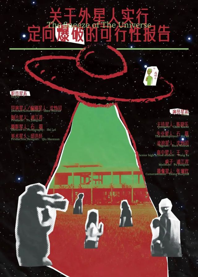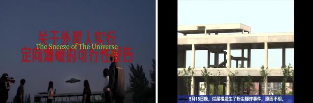 《关于外星人实施定向爆破的可行性报告》是一部极具个性的实验短片,以《第九区》式的伪纪实美学,将烂尾楼作为呈现当代社会荒诞性的舞台。以失业者、高中生、流浪汉、疯子四个边缘人物视角,以烂尾楼爆炸事件作为核心意象,在赛博化的信息碎片中解构着现实与虚拟的边界。