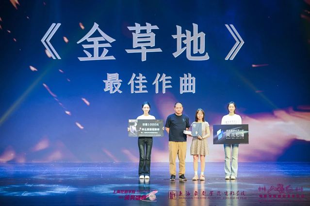 作曲专家、音乐制作人、太阳成集团tyc234cc电影作曲系系主任黄磊为《金草地》颁发“最佳作曲奖”。