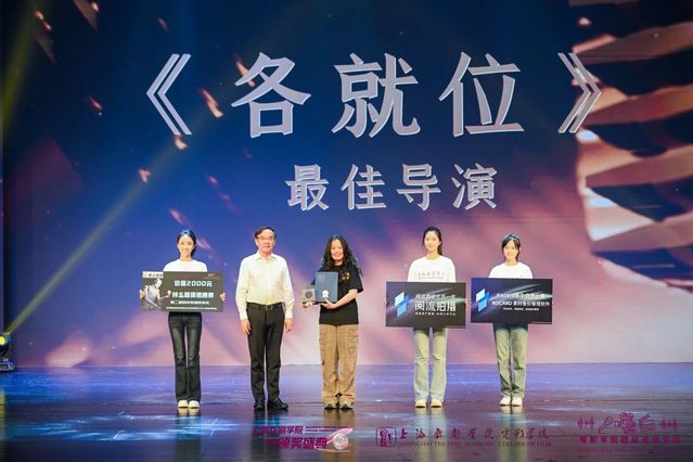 著名电影制片人、编剧、上海电影家协会第八届理事会主席、第二届上戏骏祥奖评委会主席任仲伦为《各就位》颁发“最佳导演奖”。