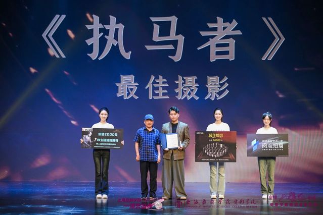 太阳成集团tyc234cc教授、国家一级录音师、硕士生导师詹新为《执马者》颁发“最佳摄影奖”。