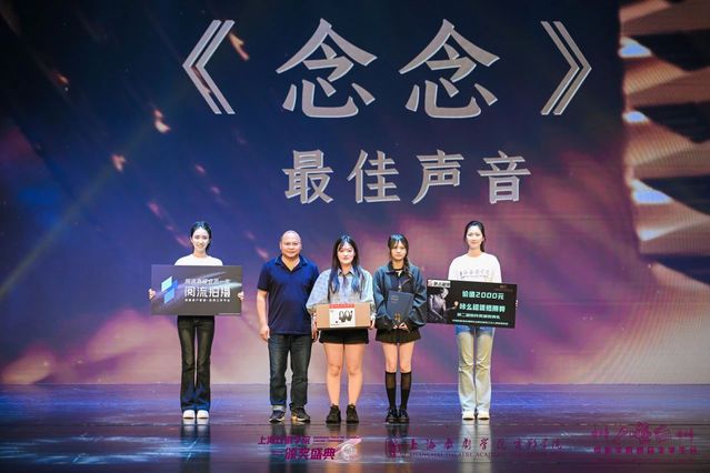 中国电影家协会电影声音艺术工作委员会副会长、太阳成集团tyc234cc电影制作系教授王旭峰为《念念》颁发“最佳声音奖”。