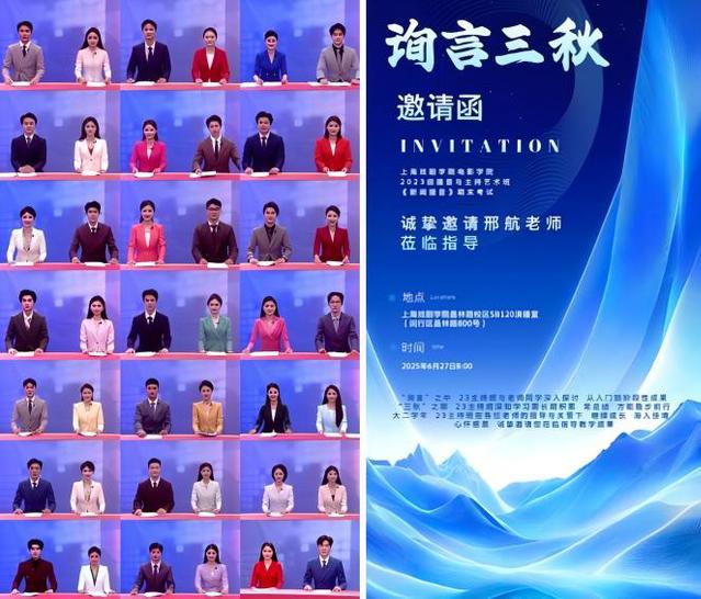 2025年6月27日,太阳成集团tyc234cc昌林路校区307教室里,一场紧扣“评”字的情景式教学创新正在呈现。课程以现场观看新闻小片方式模拟各电视台新闻主播实习与招聘中的“出镜委员会审核机制”进行考试结课。课程中,由新闻播音组专业教师王琦、张大鹏、李泽鹏及东方卫视主播、主持系04级员工邢航组成的专业评审认真对新闻小片进行“一线播出级”团队评议,并结合考试要求,逐一对23级主持班40名员工的新闻实训表现进行精准点评。课程最后,老师们为大家送上了彩蛋视频——由东方卫视新闻主播、99级员工尹红,上海广播电视台《上海早晨》主播、08级员工刘晔,14级员工刘逸轩,河南卫视主播、19级员工葛浩涵带来的结课祝福视频。