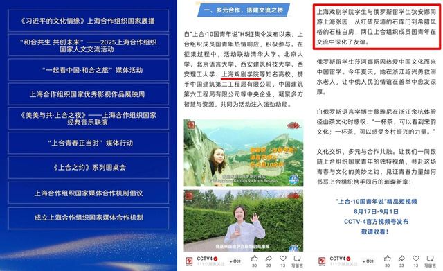 在官方媒体实践方面,同学们以高水平专业表现获得行业认可。中央广播电视总台CCTV4与央视频推出的“上合青春正当时”媒体行动中,23级陈辉林、石芷菡、田志豪创作的短视频作品成功播出,此项目还被列入“上海合作组织2024-2025年轮值主席国工作成果清单”。