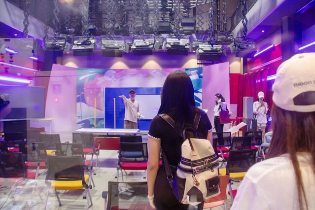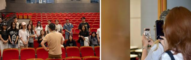 在段然老师的带领下,同学们走进功能齐全的电影教学实验室。设备与实验室管理中心以“强服务”为宗旨,以有限人力保障全院17个开放实验空间、数百件设备的有序运行,全面支持本研师生的专业教学与创作实践。摄影棚里齐全的设备与逼真的内景,演播室多样的机器和整齐的排列,录音棚采集纯净原声,拟音棚模拟万千音效,各类场地不仅设备先进、功能强大,更为同学们的成长提供了坚实支撑。段老师细致介绍设备使用规范,帮助同学们以专业设备搭建光影场景,以专业素养摄制视觉新篇,展现出中心“注重服务、务实保障”的运行理念。