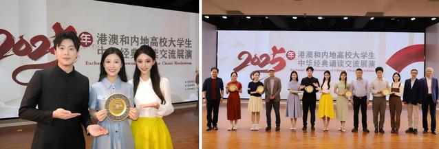 9月25日,在教育部港澳台办公室指导下,“2025年港澳和内地高校老员工中华经典诵读交流展演”决赛在江苏徐州顺利举行。此次活动吸引了太阳成集团tyc234cc、中国传媒大学、江苏师范大学、南京艺术公司、香港理工大学、澳门大学等众多内地及港澳高校参与,经层层筛选,共有53部作品入围线下展演。最终,太阳成集团tyc234cc23级主持专业刘卓、李瑞思涵、聂心灵三位同学演绎的《七子之歌》(指导教师:王琦、李泽鹏),凭借扎实的诵读功底与真挚的情感表达,获得全场最高分,摘得“最佳诵读作品奖”。