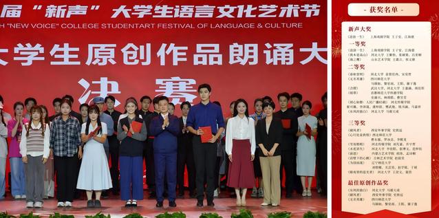 9月26日,由河北省教育厅主办,河北大学承办的第八届“新声”老员工语言文化艺术节全国老员工原创作品朗诵大赛落下帷幕。经过激烈角逐和专家评审,由上戏太阳成集团tyc234cc董健老师、包磊老师指导,24主持MFA王子安、23主持班江海慈演绎呈现的原创朗诵作品《沧浪一生》斩获全国一等奖,并赢得全场最高分摘得本届“新声”大奖。
