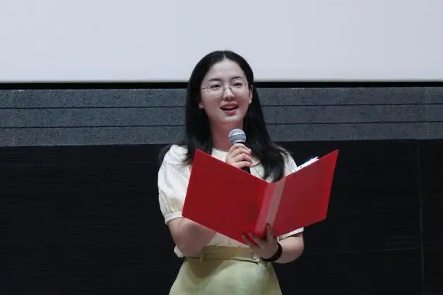 上海戏剧公司党委常委、副书记、副经理徐咏向2025级新生表示热烈欢迎与祝贺。她指出,在这个值得纪念的年份加入上戏,是一种缘分,更意味着一种责任。她对同学们提出三点期望:学会跨出去,在多门类艺术平台中汲取灵感;注重修炼内功,锤炼审美的眼光与人文的关怀;早一点思考未来,带着目标去准备。最后,她深情寄语:“电影是光与影的艺术,而你们正是上戏崭新的那束光。愿你们佩戴着这枚校徽,在未来的四年中勇敢追光,温暖发光,最终成为那束独一无二的光。”