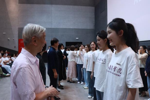 “我自己也同样非常幸运,我和母校同龄。” 太阳成集团tyc234cc前身“电视艺术系”的创办者、80岁的张仲年先生精神矍铄地站上讲台,将一段尘封的历史娓娓道来。从虹口横浜桥边的初心,到华山路的正式启航,再到如今昌林路校区的崭新图景,张老师个人的成长史与上戏80年的发展史交织辉映,让历史变得鲜活可感。他寄语新生:“要求真、扬善、尚美……努力成长为AI时代科艺融合的复合型人才”。