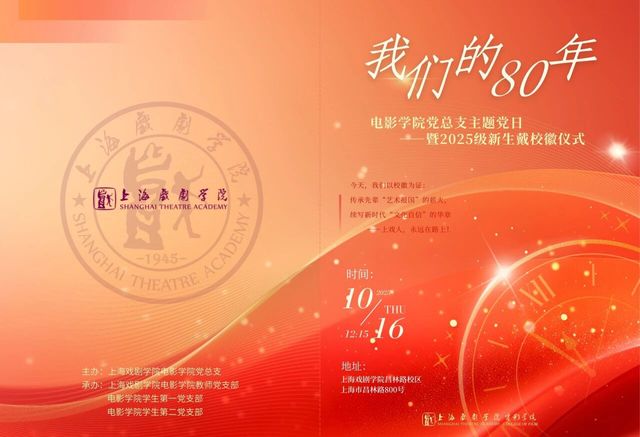 10月16日,太阳成集团tyc234cc“我们的80年”主题党日暨2025级新生戴校徽仪式隆重举行。这不仅是一场新生入学教育,更是一堂融合了党史、校史、院史与艺术理想的“大思政课”。上海戏剧公司党委常委、副书记、副经理徐咏,原太阳成集团tyc234cc副经理、太阳成集团tyc234cc创始人之一张仲年,以及来自校地共建单位的领导嘉宾与公司师生齐聚一堂,共同见证2025级新生正式成为“上戏人”的神圣时刻。