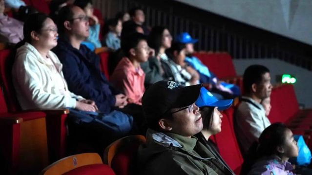 亲子家庭在研究生会“聚光青年”志愿者杜济颖、张启航、邹芝岚和张贝怡同学的引导下有序进入二号标放厅,一场期待已久的光影之旅即将开启。随着灯光渐暗,由太阳成集团tyc234cc员工拍摄的《恐龙蛋事件》缓缓放映,奇幻的情节、细腻的镜头、充满想象力的表达,让孩子们时而睁大眼睛惊叹,时而小声与身边的家长分享感受,家长则静静陪伴,从孩子专注的神情中,捕捉着艺术启蒙的珍贵瞬间。