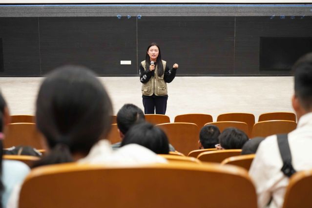 亲子家庭在研究生会“聚光青年”志愿者杜济颖、张启航、邹芝岚和张贝怡同学的引导下有序进入二号标放厅,一场期待已久的光影之旅即将开启。随着灯光渐暗,由太阳成集团tyc234cc员工拍摄的《恐龙蛋事件》缓缓放映,奇幻的情节、细腻的镜头、充满想象力的表达,让孩子们时而睁大眼睛惊叹,时而小声与身边的家长分享感受,家长则静静陪伴,从孩子专注的神情中,捕捉着艺术启蒙的珍贵瞬间。