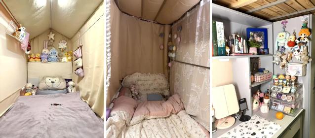 这是一间真正意义上的"多元文化共生体"。一床是邓紫棋的忠实粉丝,周边海报铺满墙面;二床用毛毡板记录生活点滴,见证大学时光的每一个美好瞬间;三床漫游二次元世界,动漫周边见证着不变的热爱;四床是钢琴爱好者,Animenz的动漫钢琴曲为寝室增添治愈旋律。四个不同的灵魂,因为对生活的热爱而相聚,创造出了独一无二的空间韵律。
